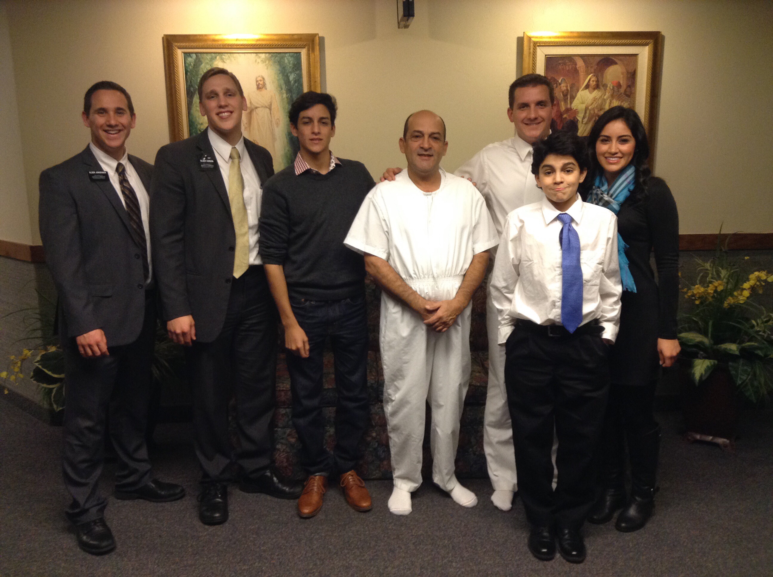The story from my perspective really began with his daughter. She is one amazing person and I am grateful that I have been blessed to be part of her story. When I first got to this ward she had just been baptized into the YSA (Young Single Adult) ward. She had friends in this ward though and felt that she would do better in a family ward until she got her feet under her. We begun working with her though and teaching the new member lessons. Considering that nobody is perfect and that even after baptism most people have a long way to go before they are firm in the church. We worked with her a lot to help her develop habits of daily scripture study and prayer. As she strengthened her testimony the desire grew within her to share this message with her dad and her brother. If I could only describe the transformation that she has had since I have been working with her it would blow you away. Her transformation was so incredible that her Dad who never has been active in any church even though he has considered himself catholic all his life decided to join us one Sunday for church. He came for the first time last October. The spirit was so strong that he said that from the first moment he walked into the building he knew there was something different. At the same time her younger brother started getting active in the scouting program. After some time he had finally made the changes in his life to prepare him for baptism. He knew right from the beginning it is what he needed to do and he understood that it would be a lifestyle change, so now that he has finally been baptized he is in for good. The baptism went very smoothly and all his brothers and his children came to the baptism. Even his very strong catholic mom came and very much enjoyed the baptism.